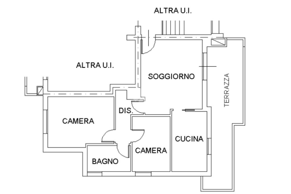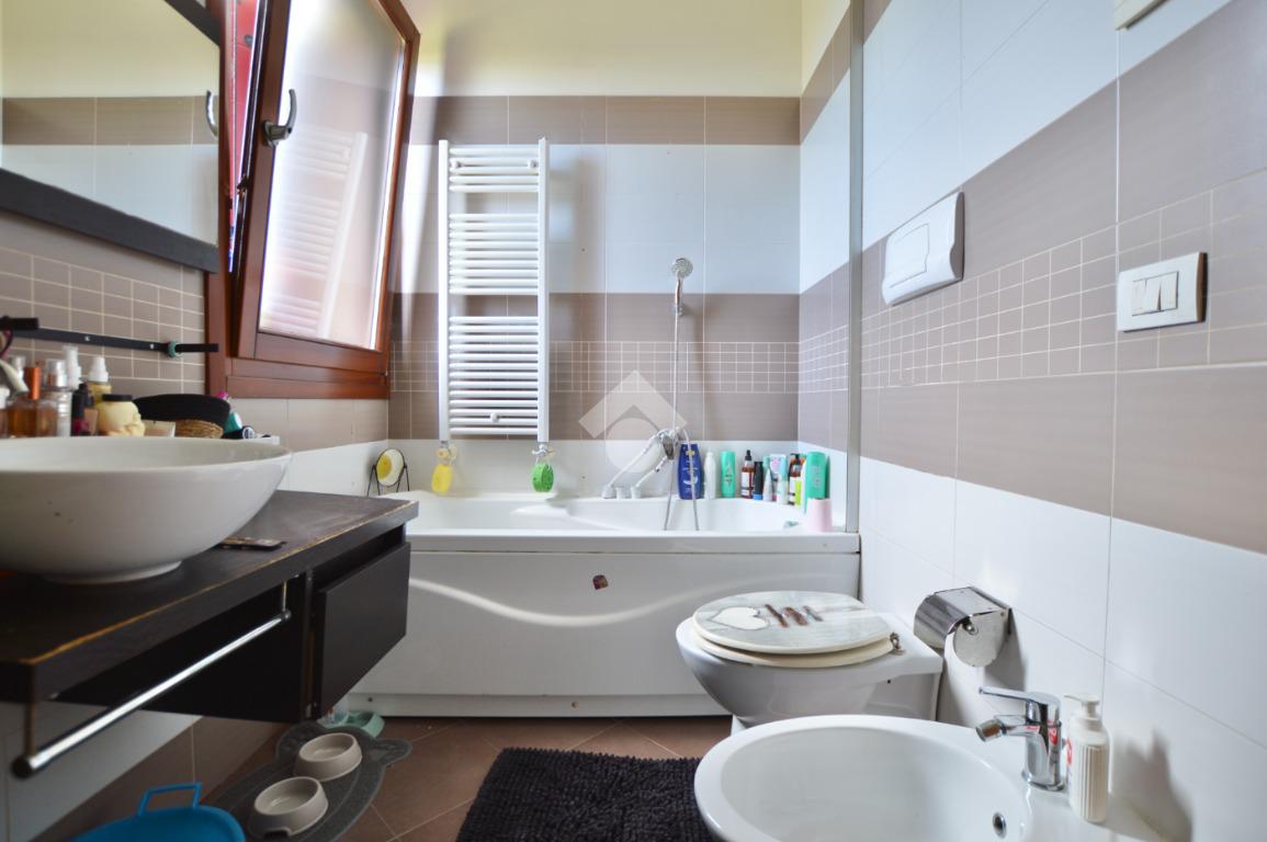 Completa la proprietà un terrazzo abitabile di circa 10 mq, un garage e un ampio parcheggio pubblico adiacente allo stabile.